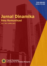 Jurnal Dinamika Ilmu Komunikasi ISSN 2088-6942 (print) and 2776-5490 (online) is a scientific journal that publishes scientific articles in the study of communication science. Jurnal Dinamika Ilmu Komunikasi aims to encourage research in communication studies. Topics addressed within the journal include but not limited to: