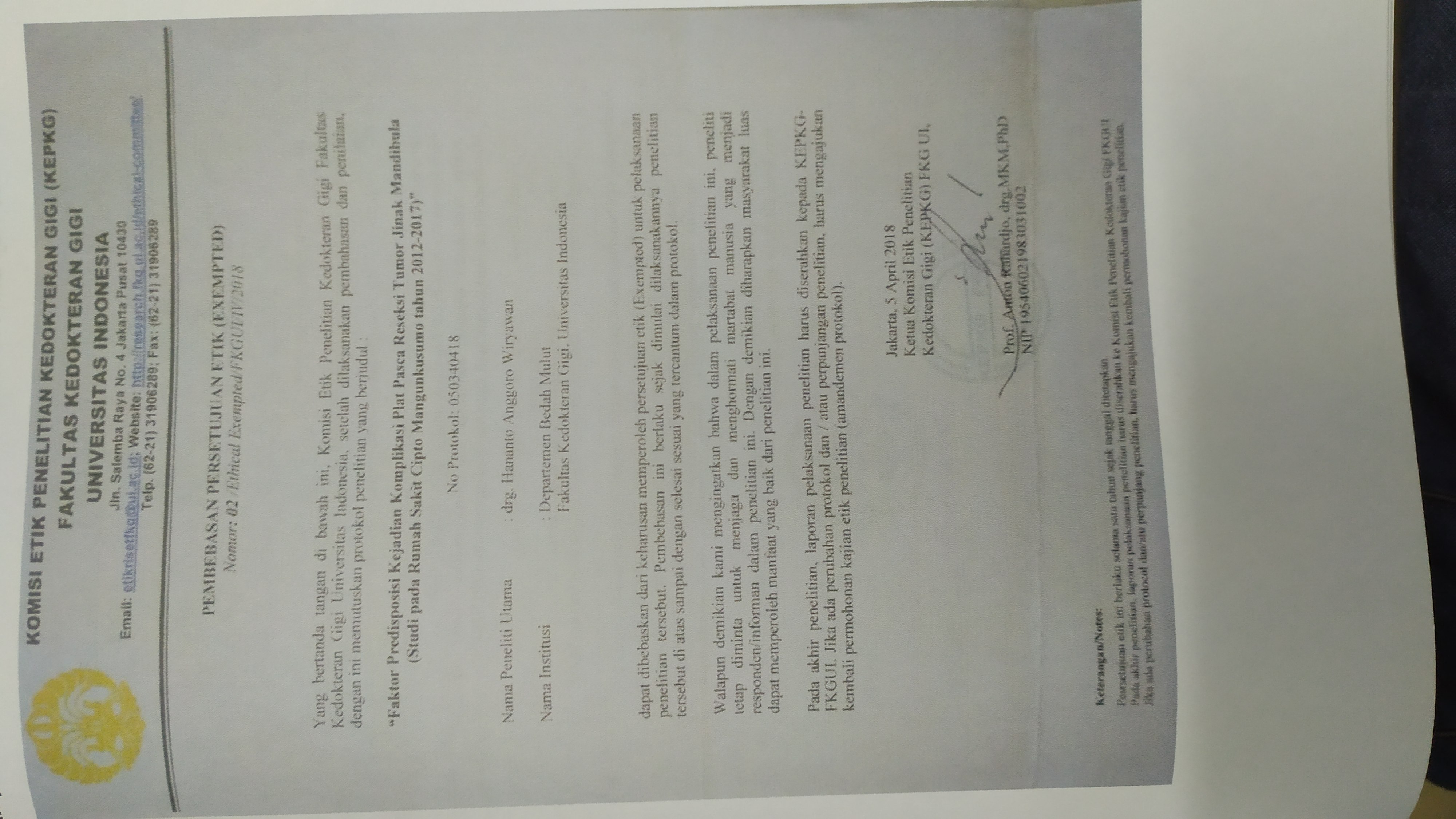 3-dimensional (3D) model to display complex cranial structures. Evaluation of the 3D model as surgical guidance require a review measurement regarding its efficiency and pitfalls. Purpose: the purpose of this research is to understand the importants key points that will resulted succesfull reconstructive surgery using 3D model as surgical guidance. Method: the evaluation of surgical result in mandibular reconstruction surgery from our Department Oral and Maxillofacial surgery, Universitas Indonesia from 2012 to 2017 reveal the differences. We analyze several keypoints that may affect to the succesfull of reconstruction surgery result. Result: we compared the result between years before and after 2015, this is where we start obligate all reconstruction surgery need to have preoperative planning using